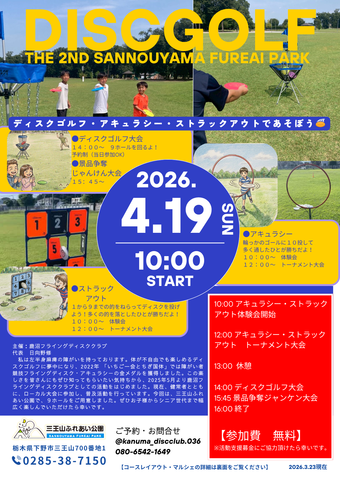 ディスクゴルフ大会・GWちびっこまつり開催のお知らせ🎤